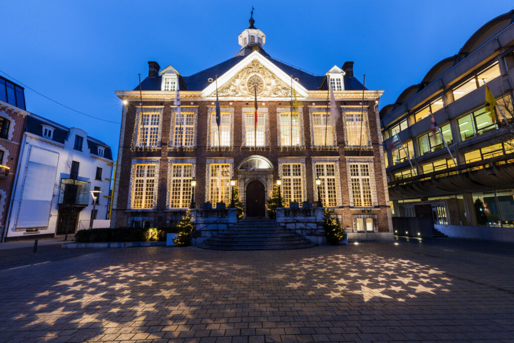 Hasselt ратуша вночі. Liege, Flemish Region, Бельгія.